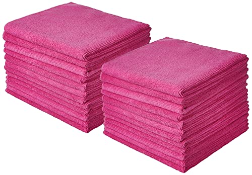 Amazon Brand – Presto! Thick Microfibre Cleaning Cloth, 40 x 40 cm, 330 GSM, Set of 24, Pink