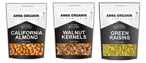 ANNA ORGANIK Premium Quality Dry Fruit Combo (Walnut Kernals – 250gm, California Almond – 250gm, Green Raisin – 300gm (800GM) For Rs. 649 @ 78 %