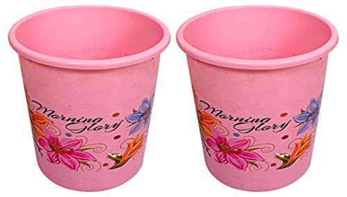 Kuber Industries Flower Print Plastic 2 Pieces Dustbin/ Garbage Bin/ Waste Bin, 7 Liters (Pink)-Kubmart10885 For Rs. 183 @ 54 %