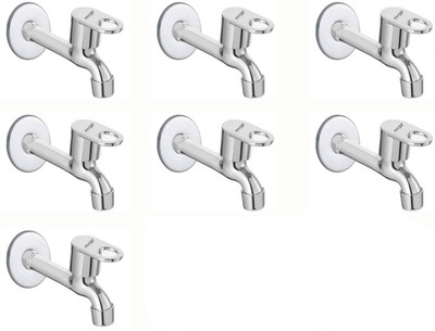 Mocksh Premium Quality Stainless Steel MAX Collection Long Body Bib Tap Bathroom Tap Foam Flow Water With Wall Flange, Chrome Plated, Brass Disc, Pack Of 7 Bib Tap Faucet(Wall Mount Installation Type)