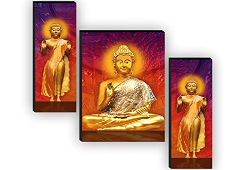 SAF Set of 3 Buddha Paintings for living room with frame Self Adeshive UV Textured MDF Framed Painting 12 Inch X 18 Inch SAF-JM7701