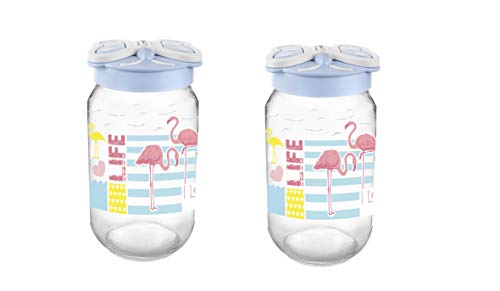 SignoraWare Glass Jar with Handle, 660 ml,Set of 2, Blue