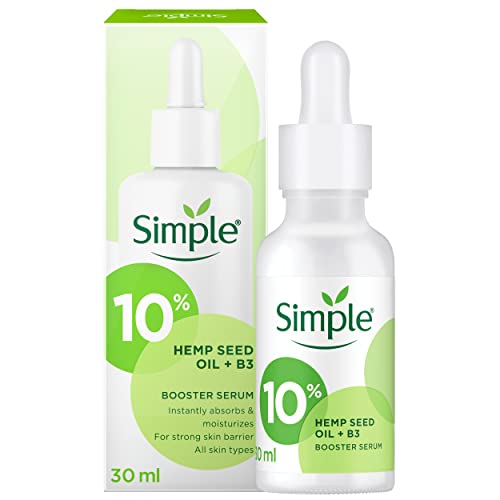 - Simple 10% Hemp seed oil + Vitamin B3 Booster Face Serum supercharges the skin and moisturises for strong skin barrier