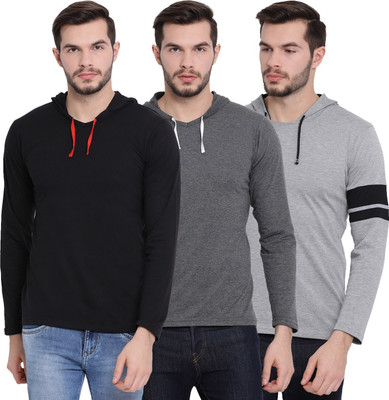 VIMAL JONNEY Pack Of 3 Men Self Design, Printed, Solid Hooded Neck Black, Grey T-Shirt For Rs. 499 @ 83 %