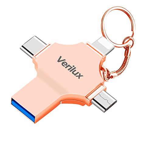 Verilux® 4 in 1 Flash Drive 64GB USB Flash Drive with Lightning, Micro, USB, Type-C Interface, Mini Hangable Flash Drive Compatible with Phone, Pad, Android, PC and More Devices (Rose Golden)