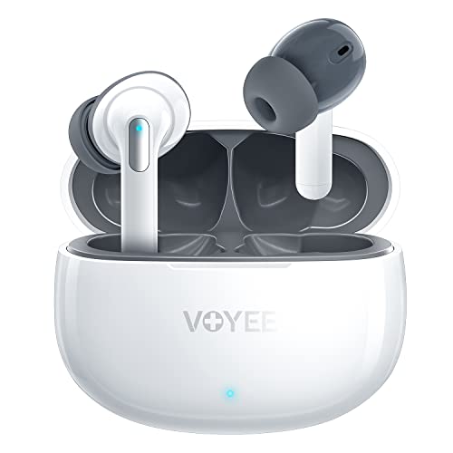 VOYEE Bluetooth Earbuds, Truly Wireless in Ear Earbuds with Mic, 20 Hour Playtime IPX5 Waterproof Bluetooth 5.0 HiFi Stereo Wireless Earphones, Active Noise Cancelling TWS Earbuds (BT03, White)