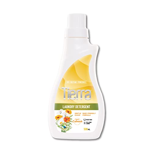 Tierra Laundry Detergent Liquid| 500 ml – Pack of 1| Fresh Calendula Fragrance| Bio-Enzyme Powered| Baby Safe & Skin Friendly| Eco-Friendly & Non-Toxic| Suitable for Machine or Hand Wash Cleaning