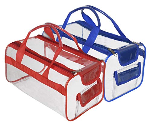 Kuber Industries Small Size Transparent Cosmetic Bag, Shoes Bag,Travel Toiletry Bag, with Sturdy Zipper and 1 External Pocket-Set of 2 (Blue & Red)
