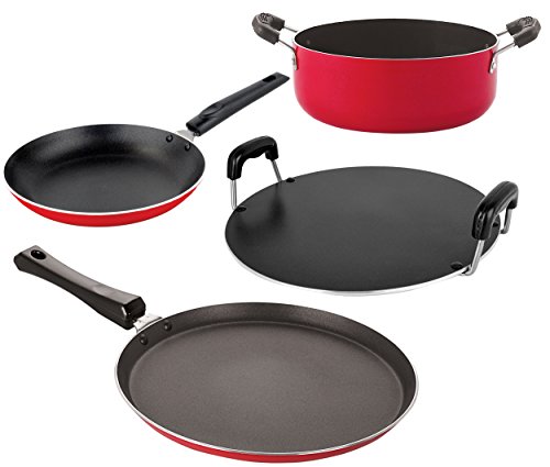 Nirlon Non-Stick PFOA Free Non-Toxic Aluminium 4 Piece Cookware Essential Combo Gift Set Offer